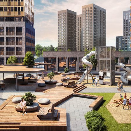 Во дворах нового ЖК будут открытые пространства для отдыха, где приятно проводить время всей семьей. Устраивайте пикники с детьми и друзьями на живописной набережной с видом на Дальний остров. Поужинать всей семьей или попить кофе с соседями можно в кафе на первых этажах жилых домов. Здесь также откроются магазины, фитнес-студии и салоны красоты.