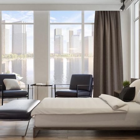 Квартиры с классической или европейской отделкой. Панорамные виды на три стороны света, лоты с террасами, лоджиями, окнами в гардеробной и ванной, комнаты с мастер-спальней.
