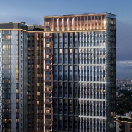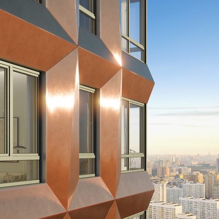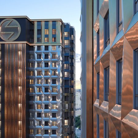 Дом расположен на пересечении улиц Обручева и Академика Волгина в престижном Юго-Западе столицы. Особая культурно-интеллектуальная среда этого района формировалась благодаря экологии в окружении парков, развитой транспортной и инфраструктурной среде, высокой концентрации хороших школ, развивающих центров, ВУЗов мирового масштаба. Оригинальная современная архитектура трех башен, сочетание роскошных отделочных материалов, медные панели – все это заставляет остановиться в восхищении. Причудливая игра линий, заложенная в фасадах, продолжается в интерьерах центрального лобби. Это – великолепное сердце дома, откуда можно попасть в один из 3х корпусов, в ресторан и в кофейню, в коворкинг, пройти во внутренний двор, не снимая тапочек.