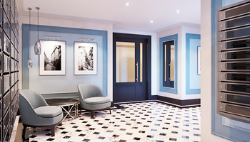 Холлы на первых этажах корпусов ЖК "Big Time" будут каждый день радовать Вас качественной дизайнерской отделкой и оригинальным освещением. Здесь также организуют небольшие зоны для ожидания с удобными креслами и столиками.