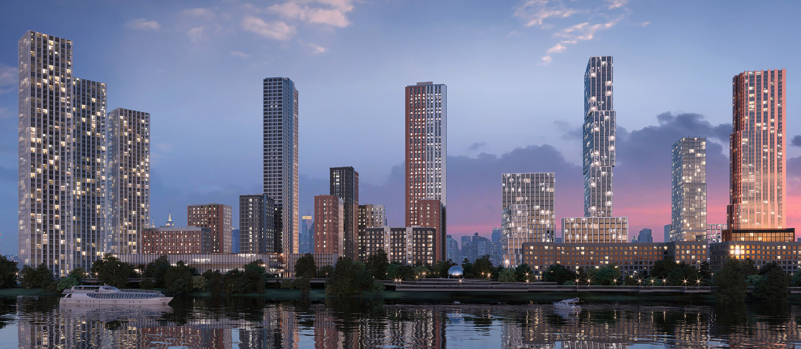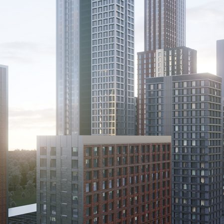 ЖК City Bay — новый проект одного из ведущих бюро Москвы Kamen. Сочетание разных фактур, цветов и высотности смотрится очень стильно, органично вписываясь в природное окружение. А панорамные окна в пол, смотровые площадки и террасы станут дополнительным украшением каждого из зданий.