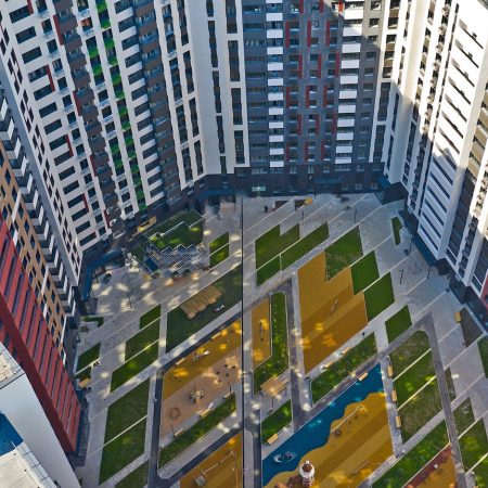 ЖК “Датский Квартал” будет состоять из пяти жилых домов переменной этажности. Комплекс отличается оригинальной внешним видом — контрастные оттенки создают уникальный орнамент на фасаде. На первых этажах корпусов разместятся магазины, салоны услуг, кафе и пекарни.