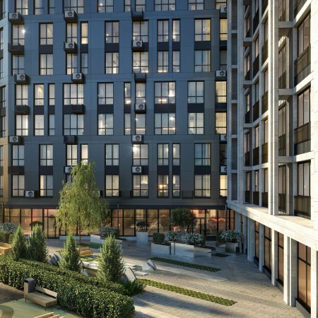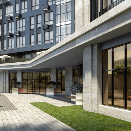 На территории дома, который станет выразительным архитектурным акцентом локации, будут благоустроены общий двор и приватный, доступный только жителям. Автомобили останутся за периметром или же в подземном двухуровневом паркинге. Каждая черта дизайна функциональных зон уникальна, а в комплексе они образуют неповторимый стиль благородства архитектуры дома. Две 16-тиэтажные секции здания соединит лобби с дизайнерской отделкой.