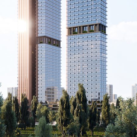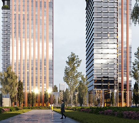 ЖК Eniteo — новый монолитный комплекс бизнес-класса. Проект состоит из двух корпусов высотой от 38 до 42 этажей и стилобата с эксплуатируемой крышей.