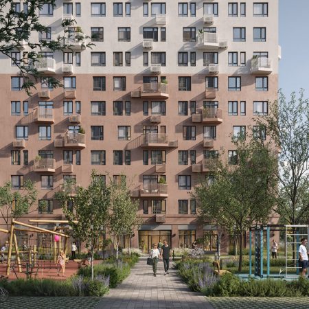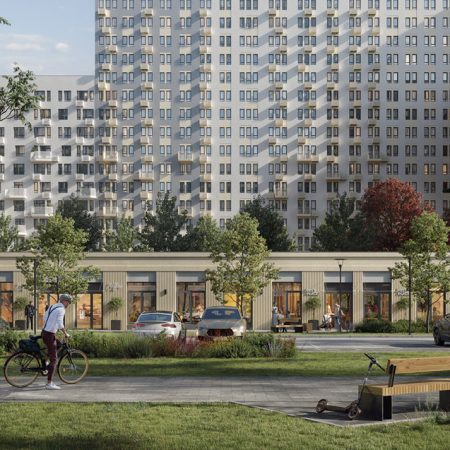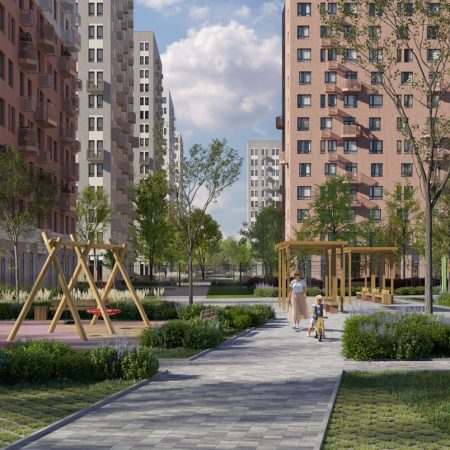 В проекте «Горки Парк» — надежные монолитные дома высотой 12–17 этажей. Фасады украсят вставки из керамической плитки, а современные корзины под кондиционеры в цвет стен гармонично дополнят экстерьер зданий.