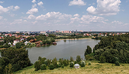 На границе комплекса располагается лесной массив, где можно гулять, заниматься спортом или просто наслаждаться тишиной. В пяти минутах от проекта — Коробовские пруды, где благоустроены прогулочные аллеи.