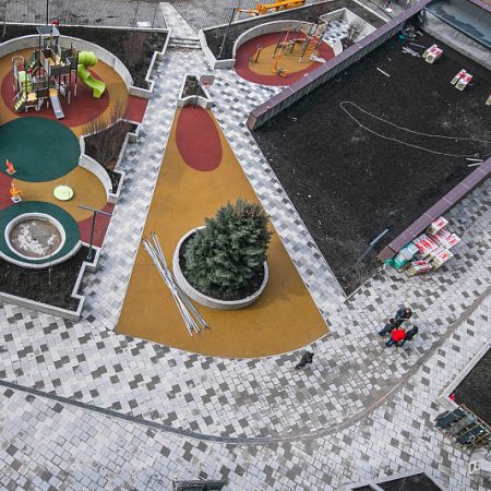 Застройщик ЖК «Грани» позаботился о том, чтобы благоустроенный внутренний двор каждый день приносил жителям только позитивные эмоции. Всего в шаге от дома организовали комфортные места для отдыха с шикарным озеленением, детские игровые площадки и изолированные места для занятия спортом, которые летом смогут Вам заменить абонемент в фитнес-центр. Можете без страха выпускать во двор детей — движение транспорта здесь ограничат, обеспечив пешеходам полную безопасность.