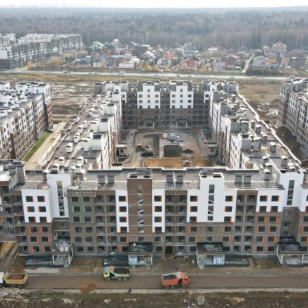 У станции метро “Медведково” нужно сесть на автобус № 166 и доехать до остановки “Погорелки”, рядом с которой ведётся строительство жилого комплекса.