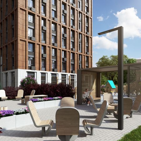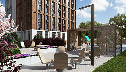 Приватный зеленый двор ЖК «Интонация» с грамотно продуманным зонированием подарит приятное и полезное времяпрепровождение.