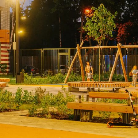Дворы в жилом комплексе "Кузьминский лес" будут полностью отданы людям: пешеходам и велосипедистам. Вы не встретите на внутридомовой территории ни одного автомобиля. Зелёные бульвары, пешеходные зоны, велодорожки, игровые и спортивные площадки для детей - благодаря всему этому дворы-парки комплекса станут местом для отдыха и общения всех жителей района. Чувствуйте себя здесь в безопасности!