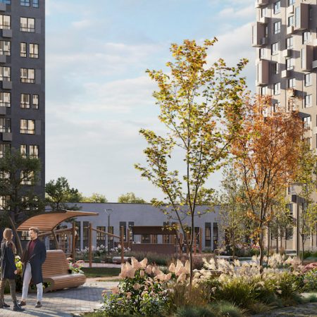 Мы придерживаемся концепции «двор-сад» и создаем безопасное зеленое пространство для всех жителей. Потренироваться в зоне воркаута или погулять с детьми на детских площадках — здесь каждый найдет занятие по интересам. Это пространство без машин — парковки выведены за пределы дворов.
