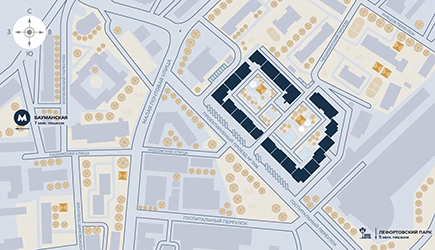 ЖК MYPRIORITY Basmanny находится совсем рядом с метро «Бауманская», поэтому на дорогу будет уходить меньше времени – до станции всего 8 минут пешком. В пешей доступности расположены набережная реки Яузы и парк.