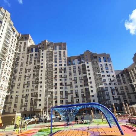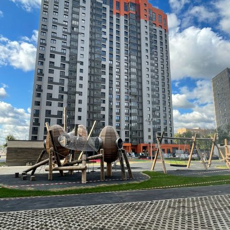 Во внутреннем дворе ЖК "Настроение" есть игровые площадки для детей всех возрастов, а также комфортные места для занятия спортом и отдыха. Застройщик также отлично озеленил территорию рядом с домом: здесь разместились пышные газоны, декоративные кустарники и цветники.