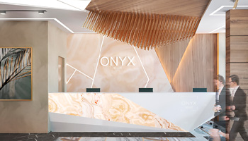 Жилой комплекс бизнес-класса “Оникс Делюкс” построен по авторскому проекту и выгодно выделяется на фоне городской застройки. Фасады здания облицованы качественным керамогранитом и плитами из натурального камня базальтовых пород. А главной изюминкой комплекса станут европейские витражи из цветного закаленного стекла — стемалита.