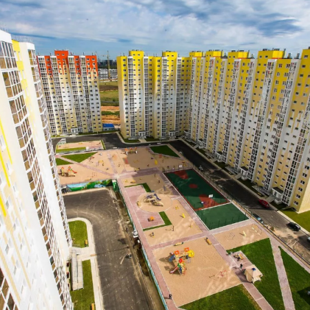 ЖК “Первый Зеленоградский” состоит из девяти готовых корпусов высотой от 17 до 25 этажей. В зависимости от типа, дома построены по монолитной или панельной технологии. На нижнем уровне расположен подземный паркинг с достаточным количеством мест, а во дворах идёт строительство четырёх детских садов и большой школы. Фасады со стильными узорами в красно-желтых цветах прекрасно смотрятся на фоне нетронутой природы Подмосковья.