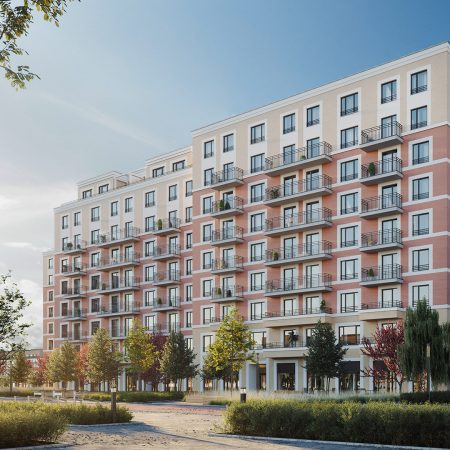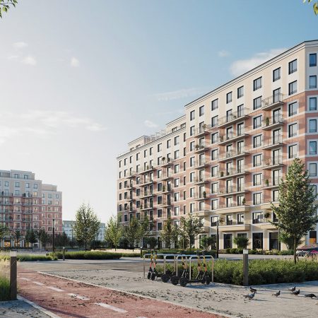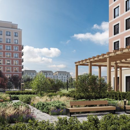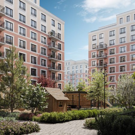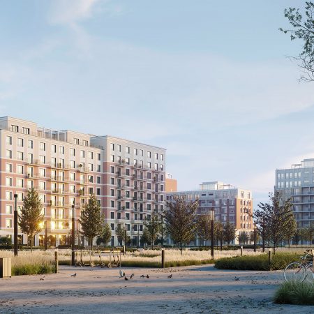Район «Пшеница» — это квартальная среднеэтажная застройка с закрытыми от машин безопасными дворами. Тут будет создана интегрированная система зелёных и общественных пространств, связующим элементом которой станет круговой бульвар. Он объединит дома с камерными дворами, пешеходными и велосипедными маршрутами, прилегающим лесопарком. «Кольцо» будет насыщено функциональными «комнатами» разной степени активности.