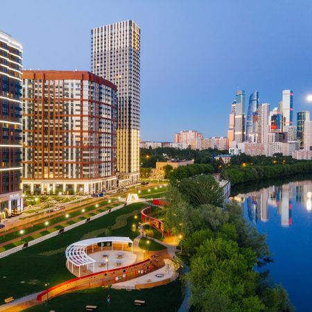 ЖК «Сердце Столицы» расположен на красивейшем берегу Москвы-реки. Благоустройством набережной занимаются авторы самых известных парков Москвы — бюро WOWHOUS. У воды уже организовали приватные лаунж-зоны, креативные детские площадки, дорожки для катания на роликах и велосипеде.