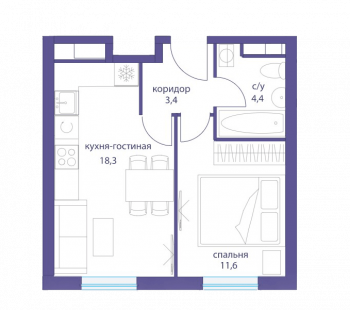 1-комнатная квартира