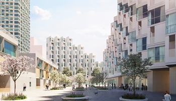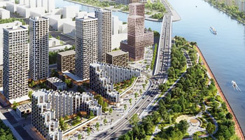 В жилом квартале «Шагал» соседствует самые разные типологии застройки и форматы жилья, ранее не пересекавшиеся ни в одном районе Москвы. Таунхаусы здесь ютятся в тени небоскребов. Каждая форма, все облики, даже малейшая деталь ландшафта, подчеркивают разнородность характера территории. При этом они не просто хаотично нагромождены. К примеру, у воды построены высокие башни, из окон которых открывается завораживающий вид на Москву-реку.