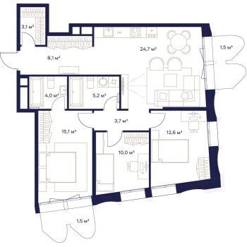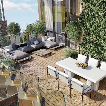 В кластере представлено 37 видов архитектурных планировок, среди которых вы точно найдете идеальный для вас вариант. Во всех квартирах есть панорамные окна и балконы, поэтому пространство заполнено солнечным светом. Также вы можете выбрать квартиру или пентхаус с личной террасой. В квартирах с мастер-спальнями есть своя собственные гардеробная и ванная комната.