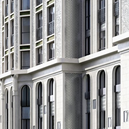 ЖК Spires — премиальный квартал с закрытой территорией, который возводят по соседству с природным заказником “Долина реки Сетунь”. Архитекторы проекта вдохновлялись классическими небоскребами Манхэттена, поэтому жилые корпуса будут смотреться стильно и актуально в любую эпоху. Здания высотой от 18 до 26 этажей отделаны натуральным камнем, клинкерной плиткой и качественным керамогранитом. Природные оттенки и классические цветовые схемы позволяют комплексу вписываться как в окружающую природу, так и в городскую застройку района.