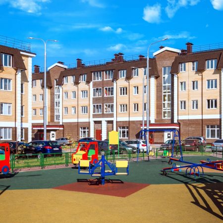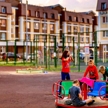 Дворы ЖК «Театральный парк» просто созданы для долгих вечерних прогулок и расслабленного отдыха в кругу семьи. Рядом с домами установлены игровые площадки с безопасным покрытием и активностями для ребят любых возрастов. Здесь много пышных газонов, деревьев и кустарников, которые каждое лето будут радовать жителей комплекса.