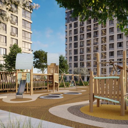 В основе благоустройства ЖК TopHILLS лежит принцип функционального зонирования. Для каждого вида активностей здесь выделено своё место, чтобы жители не мешали друг другу. Так, велодорожка, work-out зона и детская площадка расположены на достаточном расстоянии от променада для неспешных прогулок и сада камней.