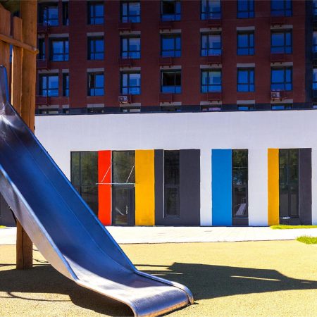 Внутренний двор ЖК "Тринити" будет полностью свободен от машин: здесь разместят безопасные игровые площадки, а также места для отдыха и прогулок. Жильцы смогут парковать свои машины на подземной стоянке с удобным выездом на улицу. Рядом с домом появится и собственный детский сад на 100 малышей.