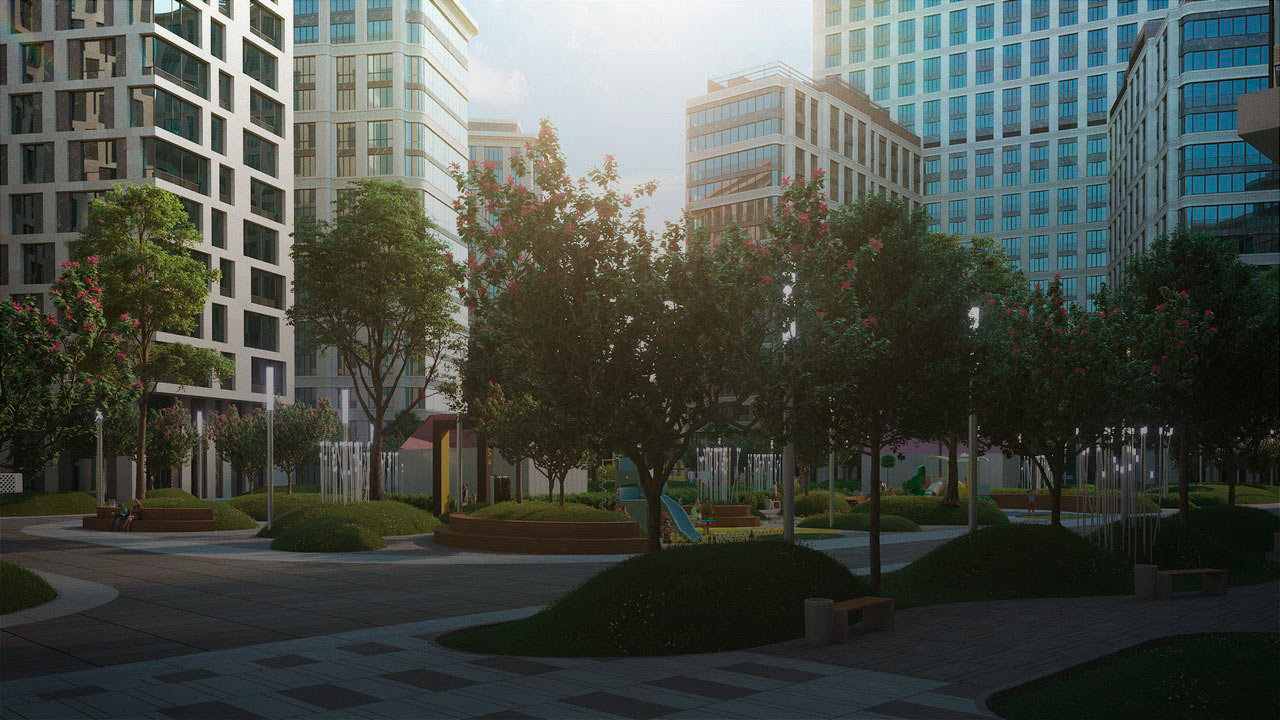 Благоустроенная зелёная зона рядом с ЖК «ВТБ Арена Парк» стала главным украшением не только квартала, но и всего района. Здесь каждый сможет найти себе занятие по душе: будь это поездка по живописному маршруту на велосипеде, завтрак в уличном кафе или весёлая прогулка с вашим ребёнком на детской площадке.