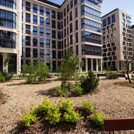 Помимо восьми гектаров спортивного парка «Динамо», рядом с домами ЖК «ВТБ Арена Парк» также есть приватные дворики, доступ в которые открыт только для жителей комплекса. Здесь расположились безопасные игровые площадки, где найдутся активности для детей любого возраста. Для тех, кто предпочитает отдых на свежем воздухе, предусмотрены уютные скамейки и целая сеть прогулочных дорожек. Вы всегда сможете заглянуть в местную кофейню, спа-салон или в продуктовый магазинчик, которые уже успели открыться на первых этажах комплекса.