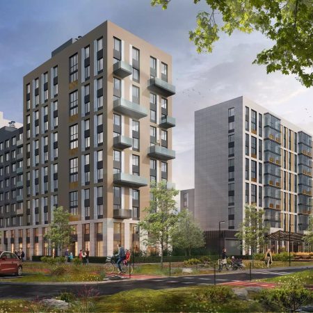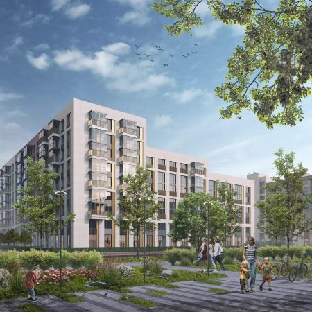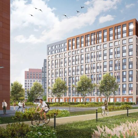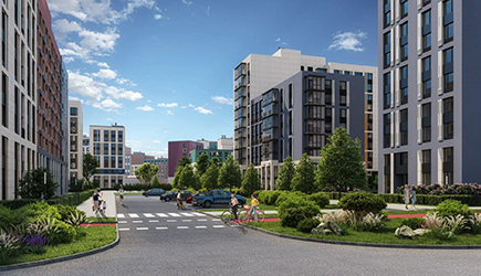 Особое внимание уделено благоустройству: широкий променад с различным ландшафтом объединит общественные пространства квартала — детские и спортивные площадки, роллердром и скейт-парк, места для спокойного отдыха и благоустроенные скверы.